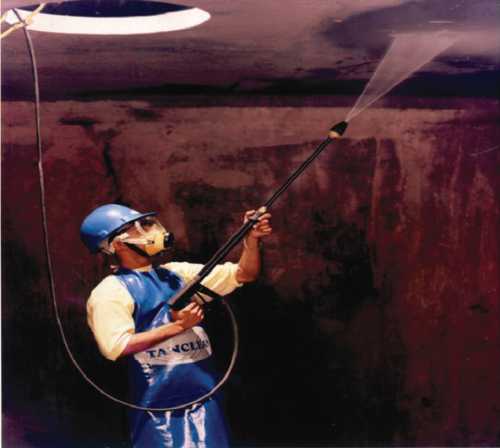 In the Third Stage of High Pressure Cleaning the Walls & ceilings of the tanks are thoroughly cleaned using special high pressure jet cleaners which rid of the walls off calcinations, algae and all contaminants which cling on the internal surface of the tank helping the microbiological contamination to grow.